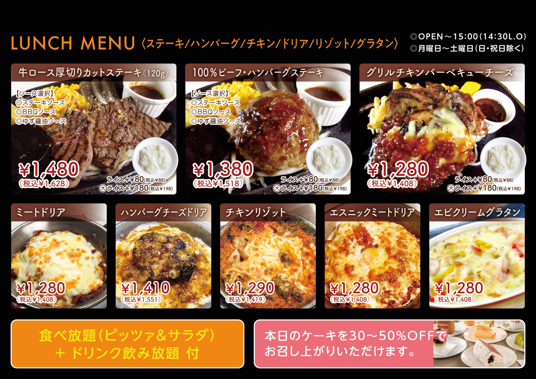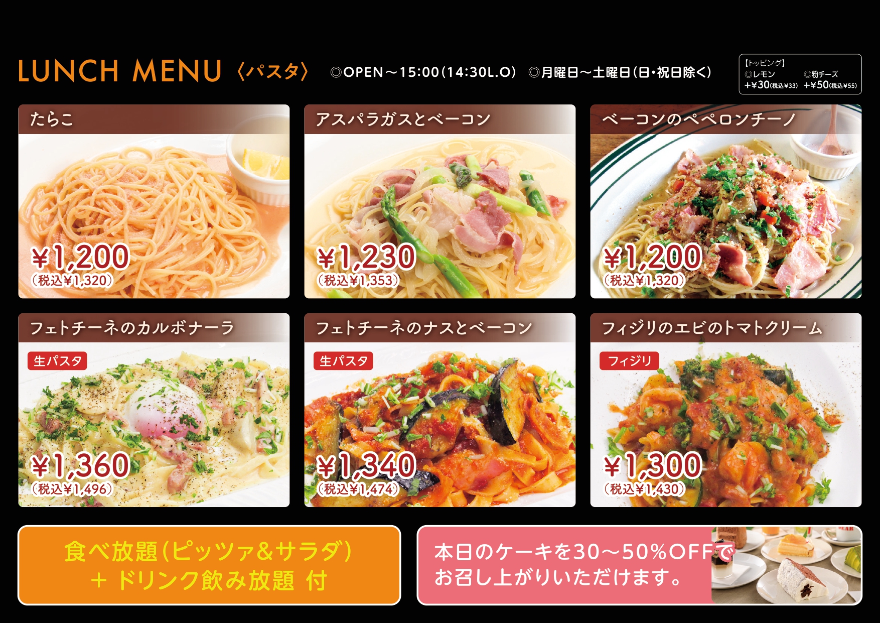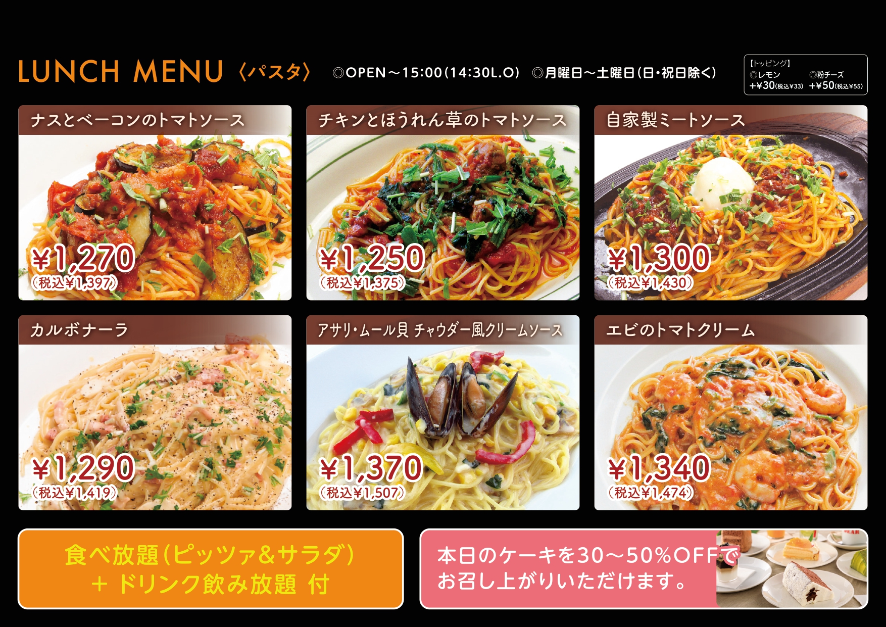 ランチタイム:OPNE~15:00(14:30 L.O)